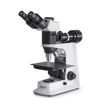KERN OKM metallurgische microscoop met reflecterend licht is ideaal voor materiaal- en oppervlaktetesten. De krachtige, traploos dimbare 30W halogeenverlichting zorgt voor een optimale verlichting. Een ingebouwd filterwiel met 5 verschillende filters (blauw, groen, geel, grijs en leeg) maakt het eenvoudig om het kleurenfilter te wisselen en snel een ander contrast te verkrijgen. De microscoop is voorzien van "lange werkafstand" objectieven waardoor ook dikkere monsters bekeken kunnen worden. Daarnaast wordt de OKM standaard geleverd met een eenvoudige polariserende eenheid.