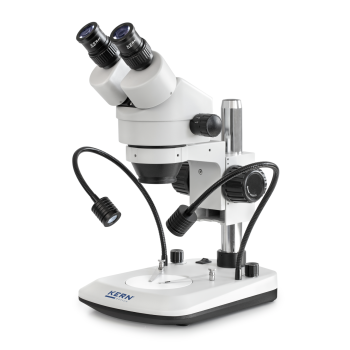 KERN OZL 47 Stereomicroscoop wordt geleverd met 2 flexibele LED-lampen van 3W, zodat u altijd de juiste verlichting vanuit de juiste hoek heeft. De microscoop heeft een eenvoudig instelbare 7-45x traploze zoom. HWF (High Wide Field) oculairs zorgen ervoor dat u kan gemakkelijk langer met de microscoop werken zonder de ogen te zwaar te belasten en is ook geschikt voor brildragers.