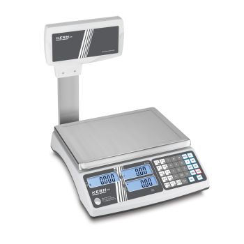 Winkelweegschaal KERN RIB is een betrouwbare prijscalculatieweegschaal, uitgerust met drie afzonderlijke displays voor weergave van gewicht, stuksprijs en totaalprijs. De weegschaal beschikt over 10 directe toetsen voor veelgebruikte artikelen en een geheugen voor in totaal 20 PLU’s (voorgeprogrammeerde prijzen/eenzheden). Met een optioneel oplaadbaar batterijpakket is de RIB ook perfect geschikt voor mobiel gebruik, bijvoorbeeld op markten. Voor het wegen van groenten, fruit of andere producten kan een roestvrijstalen taraschaal als accessoire worden besteld.
